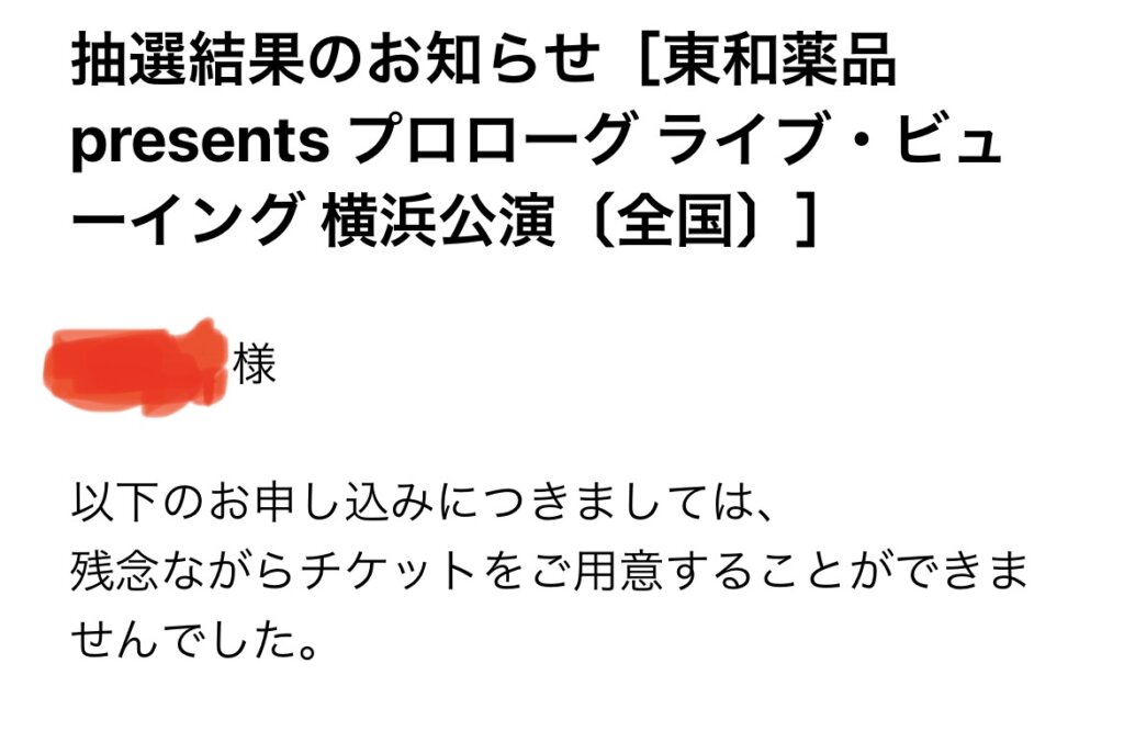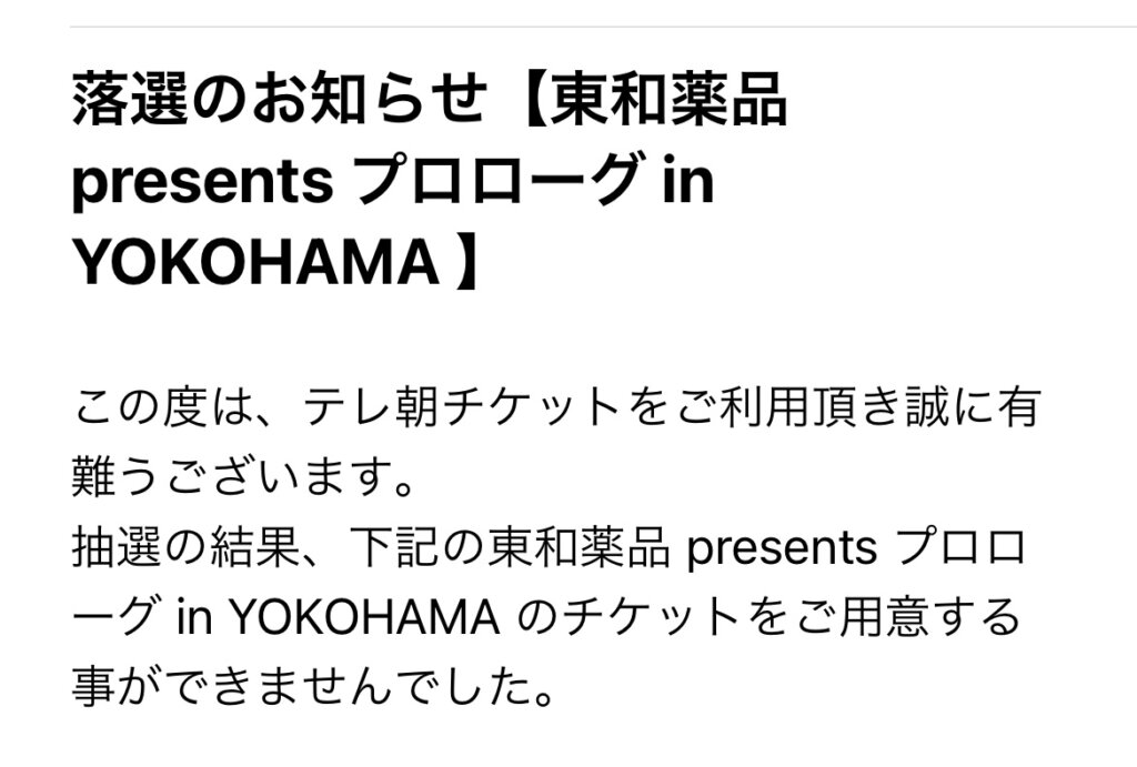 ちなみに横浜公演全落ちした私ですが八戸公演も申し込みました。現時点で抽選結果は届いておりません。