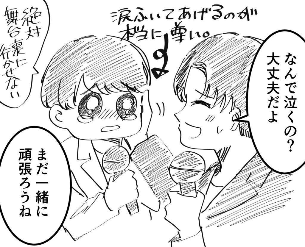 今アイドルとして活躍しているZeeくんが、仮の話で「ステージの裏に行くかもしれない」というようなことを以前に言ったのに対して、Nunewくんが思わず泣いてしまったのです。。。(※イベント中)実際に動画を見たのですが、Zeeくんが優しく涙拭いてて尊すぎむりでした。