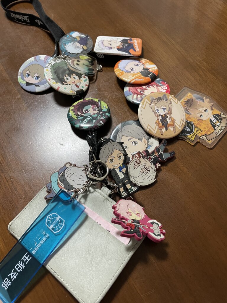 名札のストラップ部分に推しグッズや缶バッジをつけたりする人が多くいます!!