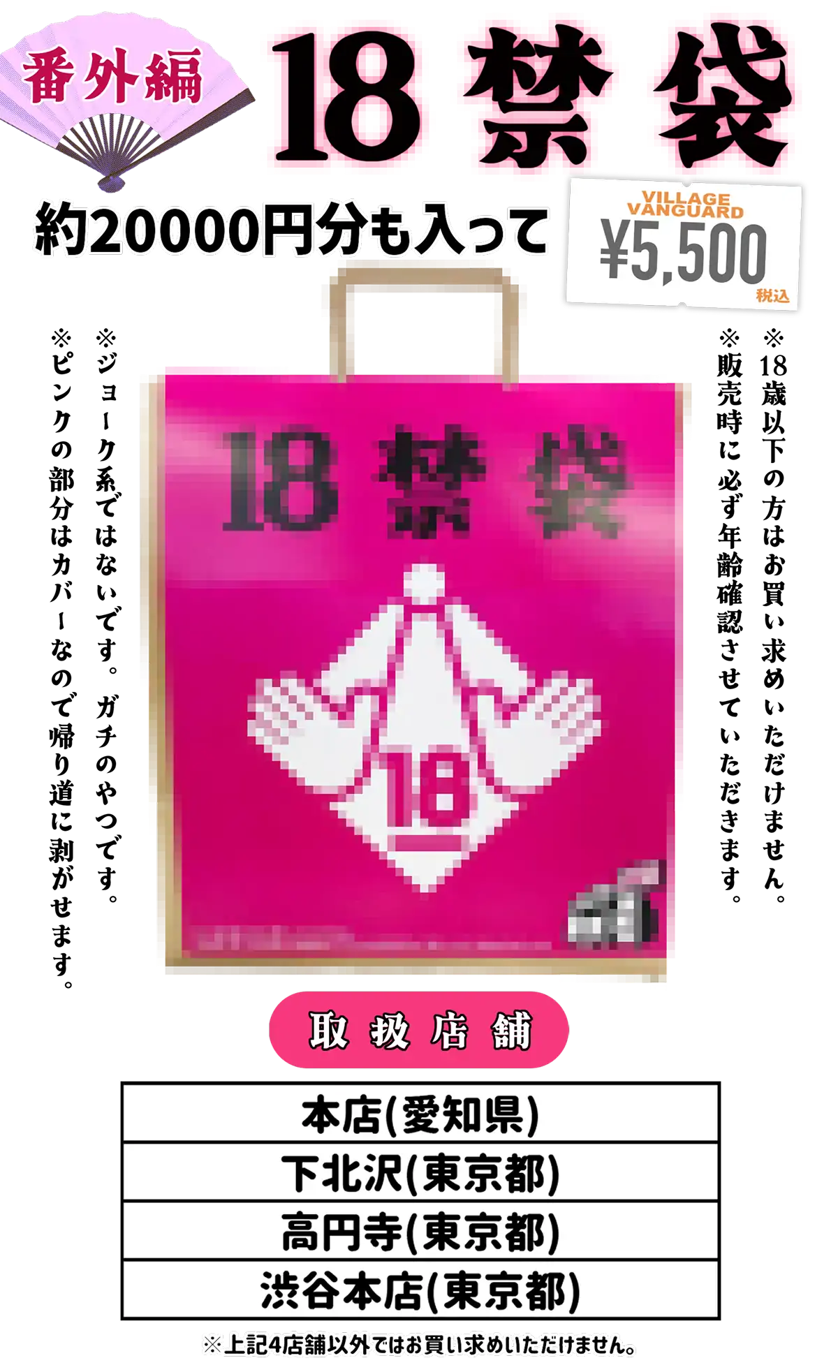 約20000円も入って¥5,500(税込)※18歳以下の方はお買い求めいただけません。