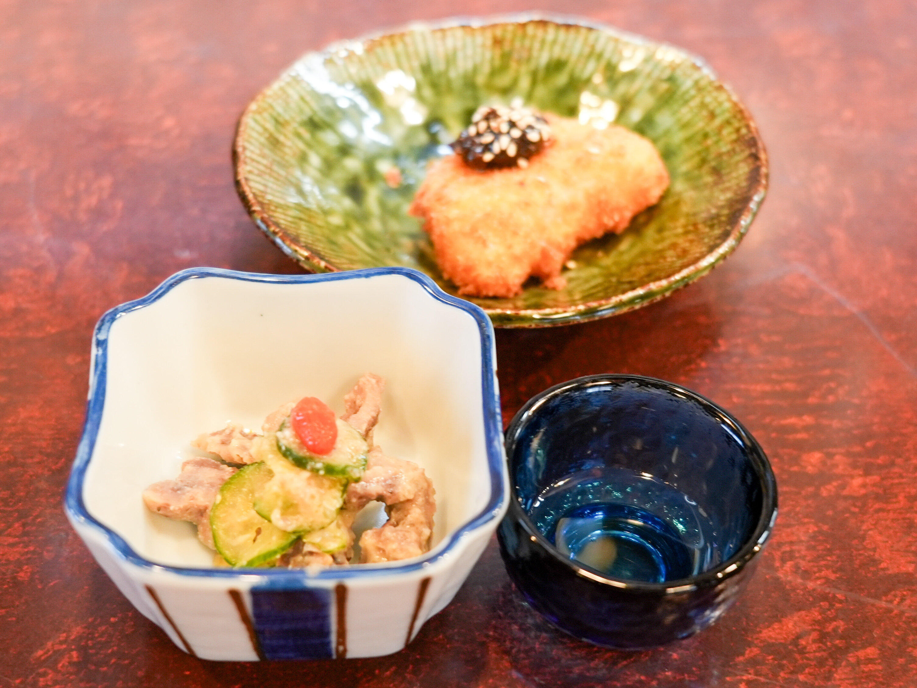 大根のフライに珍味の小鉢。