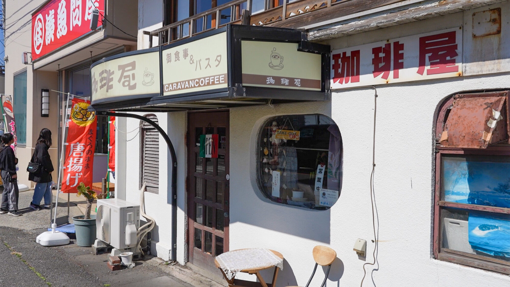 創業60年を超える、レトロな老舗喫茶店「珈琲屋」さんにて、珈琲でホッと一息をついたり…。この三崎港の路地裏にもたくさん興味深いお店がいっぱい。