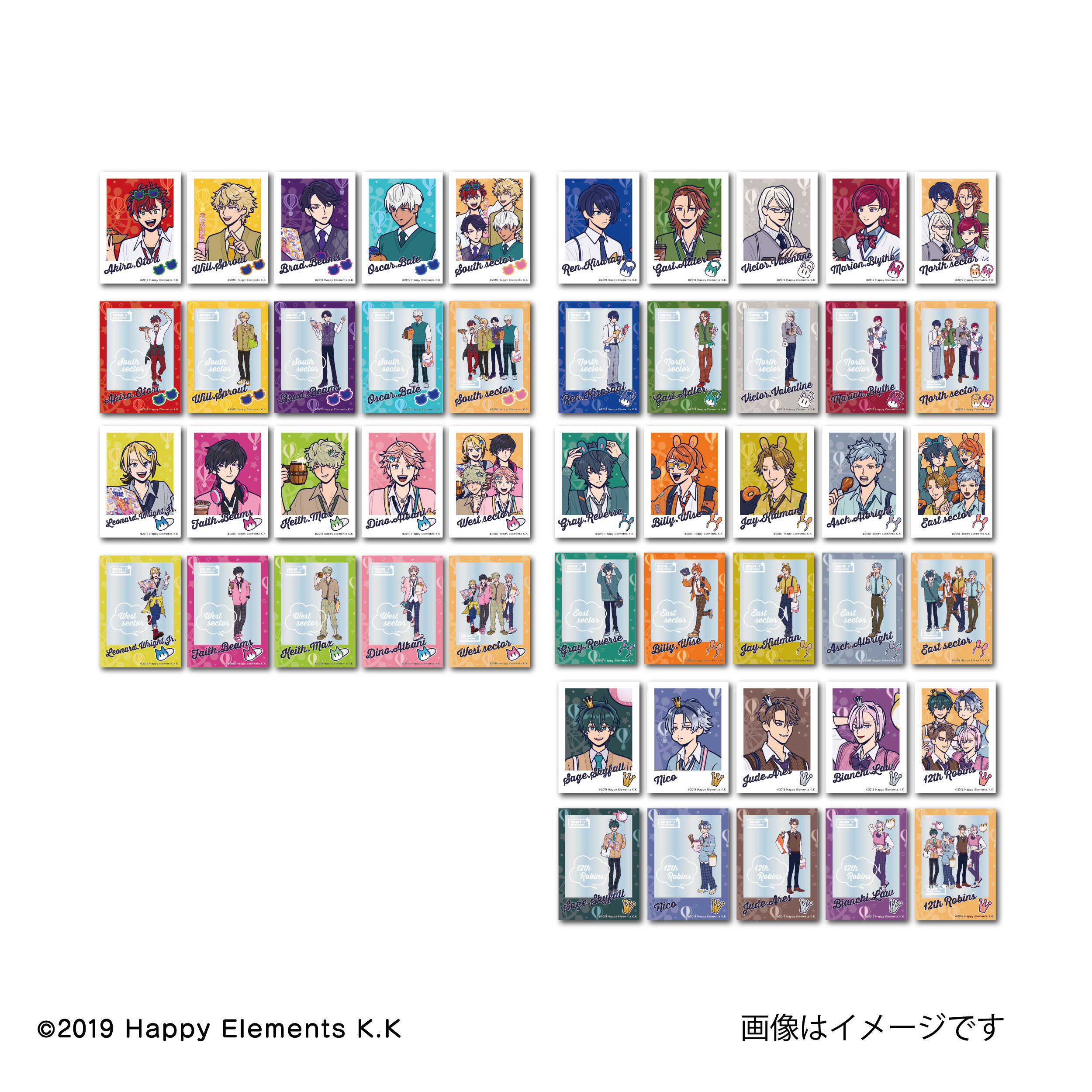 今回は、テーマパークを楽しむ『ヒーロー』達がテーマ!それぞれの個性を表現した制服風ファッションや、セクターごとのお揃いのアイテムを身に着け、楽しいひと時を過ごしている姿が描かれていてます。